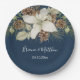 Winter Navy Blue Elegant Script Wedding Paper Plate