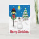 Winter night Christmas Card with a snowman, Christmas tree, and Candy Cane inside.