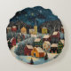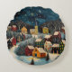 Winter Night Folk Art Oil Painting Poster Round Cushion