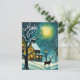 Winter Night Forest Full Moon Cabin Deer Christmas Holiday Postcard