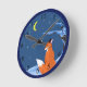 Winter Night Fox Round Clock