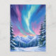 Winter Night Northern Lights Watercolor Mountain Postcard