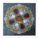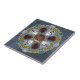 Art Nouveau arches surround the stained glass inspired layers of this mandala, featuring a cosy fireplace, poinsettias, snowmen, auroras, and snowflakes in cool colours to fully embody the feelings of crisp, coolness that come with winter. This tile can be framed to create a trivet or placed inside a wooden gift box lid. Tiles without a frame will also fit inside the large gift box to create a matching set.