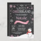 Winter Onederland 1st Birthday Invitation. Snowman. Pink and White Snowflake. First Birthday. Girl 1st Bday Invite. Chalkboard Background. Black and White. For further customisation, please click the "Customise it" button and use our design tool to modify this template.