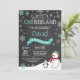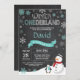 Winter Onederland 1st Birthday Invitation. Snowman and Penguin. Aqua Teal Turquoise and White Snowflake. First Birthday. Boy or Girl 1st Bday Invite. Chalkboard Background. Black and White. For further customisation, please click the "Customise it" button and use our design tool to modify this template.