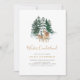 Celebrate your baby’s first birthday with this gender neutral birthday invitation featuring a watercolor winter themed illustration of a fawn and a deer in front of a snowy forest.