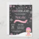 Winter Onederland Polar Bear 1st Birthday Invitation. Baby Girl. Pink and White Snowflake. First Birthday. Girl 1st Bday Invite. Chalkboard Background. Black and White. For further customisation, please click the "Customise it" button and use our design tool to modify this template.