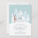 1st Birthday Blue Winter Wonderland, Onederland Invitation with cute accents. Little snowflakes in the background. In a front with a nice deer and pine trees. Set a sweet and magical tone for the party with this invite. Perfect for your little snowman's first Birthday.