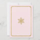 Cute winter-themed first birthday invitation featuring pink and gold snowflakes, faux glitter stars and confetti sprinkles