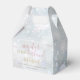 Cute 1st birthday winter ONEderland favour boxes featuring elegant typography and delicate snowflakes on a winter frost background. Designed by Thisisnotme©