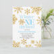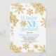 Winter Onederland Blue Gold Snowflake 1st Birthday Invitation