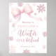 Winter onederland pink bow snowflake girl 1st birthday welcome poster.