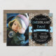 Winter Onederland Boy 1st Birthday Invitation with custom photo. Blue and White Snowflake. First Birthday. Boy 1st Bday Invite. Rustic Wood Chalkboard Background. Black and White. Blue Ribbon. For further customisation, please click the "Customise it" button and use our design tool to modify this template.