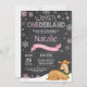 Winter Onederland Deer 1st Birthday Invitation. Deer. Pink and White Snowflake. First Birthday. Girl 1st Bday Invite. Chalkboard Background. Black and White. For further customisation, please click the "Customise it" button and use our design tool to modify this template.
