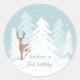 First Birthday Winter Wonderland, Onederland Custom Sticker. With little snowflakes, a cute deer and pine trees. Set a sweet and magical tone for the party with this coordinating sticker design. Perfect for your little snowman's first Birthday.