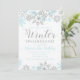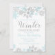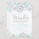 Winter Onederland first birthday invitation with blue and silver snowflakes.