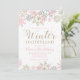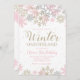 Winter Onederland first birthday invitation with gold, silver and pink snowflakes.
