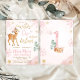 Celebrate your little one's 1st birthday with these ever-so-cute Winter Onederland-themed invitations! This colourful design features pink and gold pastel snowflakes, deer, and pine trees.