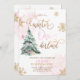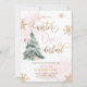 Winter Onederland Girl Pink Gold 1st Birthday Invitation