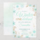 Winter Onederland Green Gold Snowflake Birthday Invitation