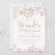 Winter ONEderland first birthday invitation with pink, gold and silver snowflakes