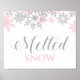 Winter Onederland Melted Snow Sign with pink and silver glitter snowflakes.