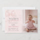 Winter ONEderland Photo Pink Bow First Birthday Invitation