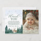 Send warm gratitude with this cozy Winter ONEderland photo thank you card! Featuring watercolor pine trees, woodland deer, and delicate snowflakes, this design beautifully complements your winter first birthday theme. Personalize it with your baby’s photo for a heartfelt, festive touch — perfect for rustic, woodland, or Christmas-themed celebrations.