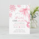 Winter Onederland Pink Bow Snowflake Birthday Invitation