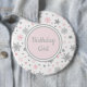 Cute winter-themed badge featuring pink and silver snowflakes, faux glitter stars and confetti sprinkles - great for party favours!