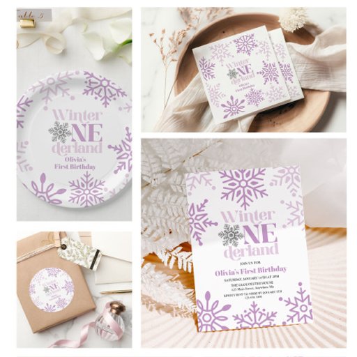 Winter Onederland first birthday with purple snowflakes.