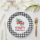 Winter Onederland first birthday party with red truck and black buffalo plaid.