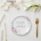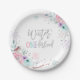 Winter ONEderland Silver Glitter Pink Floral Girl Paper Plate