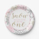 Winter Onederland snow much fun to be one paper plate with pink and gold snowflakes. Perfect for a winter first birthday party