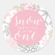 Snow much fun to be One! Winter Onederland sticker for first birthday with pink, gold and silver snowflakes