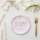 A modern and elegant winter wonderland party paper plates for girls first birthday! Featuring watercolor winter snowflakes, pink glitters and clouds of pink hues with a combination of serif and script lettering for the birthday details.