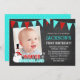 A cute Winter ONEderland design perfect for a winter themed 1st birthday party for a little boy. Design features a whimsical snowman, pendant bunting banner, snowflakes and chalkboard background in trendy colours of red and aqua teal blue.