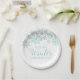 Winter Onederland First Birthday Party paper plates. Teal and Silver Snowflakes.