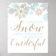 Winter Onederland first birthday thank you sign with blue and gold snowflakes