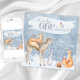 Winter onederland birthday party invitation with adorable woodland animals on a blue snowflake background. This whimsical woodland deer, fox, rabbit and squirrel winter onederland first birthday party invitation is easily customised for your event by simply adding your event details.