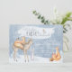 Winter onederland birthday party invitation with adorable woodland animals on a blue snowflake background. This whimsical woodland deer, fox, rabbit and squirrel winter onederland first birthday party invitation is easily customised for your event by simply adding your event details.