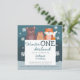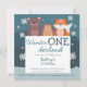 Winter Onederland woodlands animals with snowflakes, green teal background.