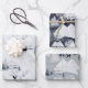 These winter or Christmas wrapping paper sheets have a watercolor art nature scene with a woodland deer, an owl in flight, evergreen trees, snow covered mountains, and a full moon, creating a rustic nature pattern on a background of snowy white, silver grey, or dark blue. Everyone will love this elegant gift wrap.
