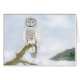 Owl sits upon branch gazing out to the snow filled countryside. Great for your bird/nature lover.
