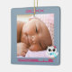 This is a lovely ornament, and great that you personalise the back with details of birthday, weight, etc.. My only tiny disappointment is the "My First" doesn't stand out very well on the background. More than happy with the printing of the photo and the writing on the back.