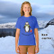 This cute penguin is wearing a striped winter scarf, and has a festive red parcel ready for christmas gifting. The accompanying caption is "CHRISTMAS IS COMING" which you can edit for your own wording.