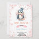Winter penguin girl shower birthday invitation