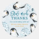 Send some icy smiles with our 'Snow Much Thanks stickers, starring a troop of cheerful penguins frolicking in a snowy wonderland with igloos and snowflakes on icy blue background. A cute hand painted arctic watercolor illustration
