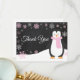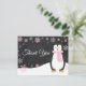 Winter Penguin Snowflake Pink Thank You Card. Pink Penguin. Chalkboard Background. Black and White. Pink Snowflake. Love and Thanks, beautiful script font. Add your message on back or leave blank and hand write. For further customisation, please click the "Customise it" button and use our design tool to modify this template.