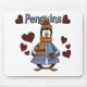 Winter Penguin T-shirts, hoodies, cards, stickers, magnets, mousepads, bags, and other penguin lover apparel and gifts featuring a penguin dressed in winter garb surrounded by lots of red hearts!